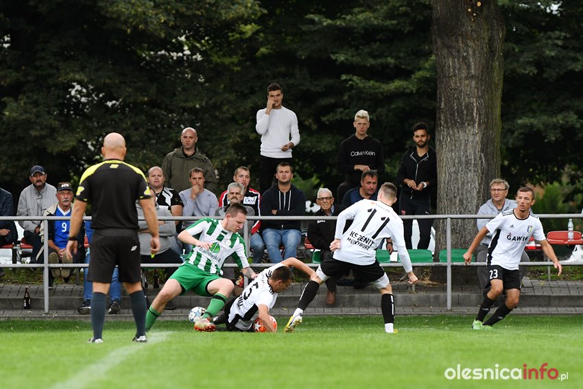 W końcówce pierwszej połowy sygnał do ataku dał Krzysztof Bezak, który po dokładnym dośrodkowaniu głową skierował futbolówkę do bramki rywali. Minutę później Widawa mogła objąć prowadzenie. Najpierw na bramkę Zenitu uderzał Szymon Wróblewski, ale piłka uderzyła jedynie w poprzeczkę. Dobitka głową Sebastiana Rachwała trafiła jednak wprost pod nogi obrońcy z Międzyborza, który uratował swój zespół przed utratą gola.