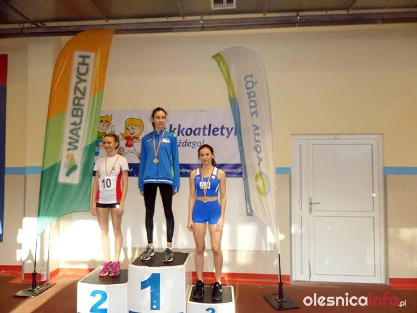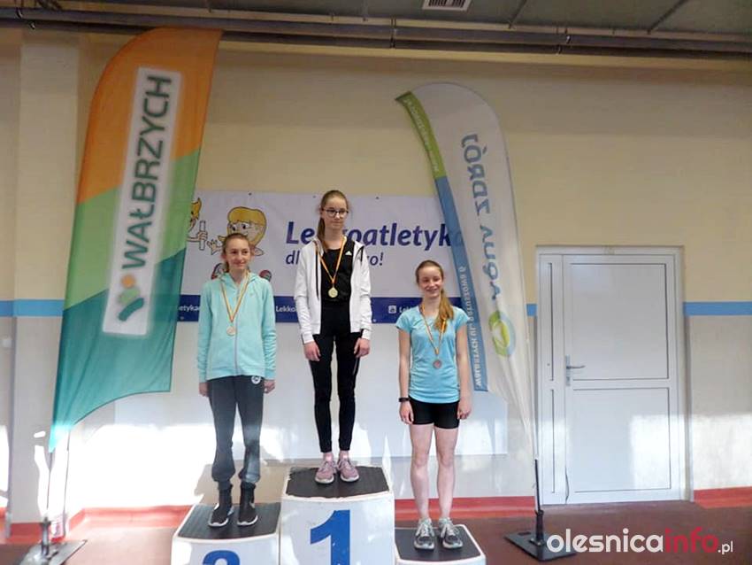 Trzy medale zdobyli młodzi lekkoatleci z WKS Oleśniczanka na hali w Wałbrzychu. Najwięcej powodów radości sprawili Ksawery Choroszy, który wywalczył srebro na dystansie 600 m z wynikiem 1:39.38. Marcelina Banasik z wynikiem 3:31.93 zdobyła brązowy medal na dystansie 1000 m. Z kolei Tamara Kicuła zajęła trzecie miejsce w biegu na dystansie 600 m z wynikiem 1:58.43.