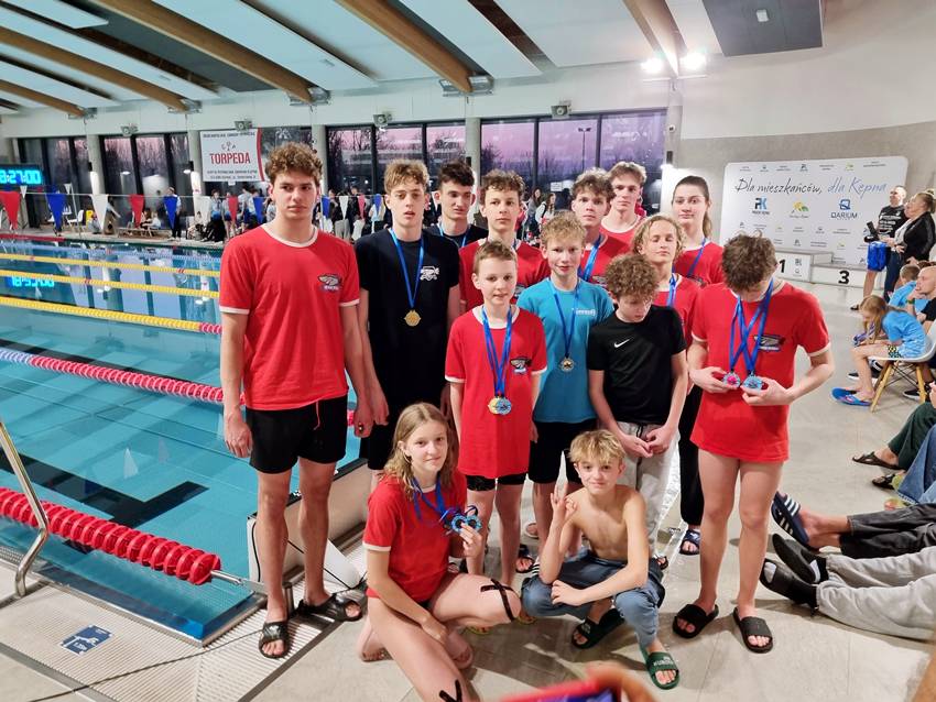 Worek medali dla pływaków z Torpedy podczas zawodów Torpeda Cup