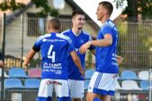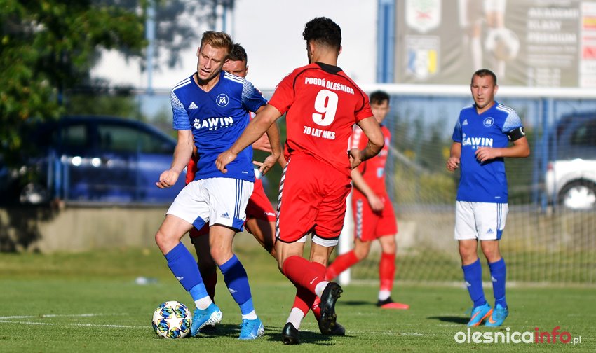 Wynik meczu otworzył w 35. minucie Bartosz Ciszewski, który potężnym strzałem pod poprzeczkę pokonał Grzegorza Kubiszyna. Radość z prowadzenia nie trwała jednak długo, bo 3 minuty później zamieszanie w polu karnym wykorzystał Szymon Rusiecki. Tuż po rozpoczęciu drugiej połowy to gospodarze objęli prowadzenie. Prostopadłe podanie znów wykorzystał Rusiecki, który płaskim strzałem pokonał Przemysława Raka. Podopieczni Marcina Jurasika długo nie mogli znaleźć sposobu, by zdobyć wyrównującego gola. Dopiero w 63. minucie po faulu w polu karnym sędzia bez wahania wskazał na wapno, a jedenastkę pewnie wykorzystał Karol Siódmiak. Do końca spotkania Pogoń miała jeszcze kilka okazji by zdobyć zwycięską bramkę, ale brakowało skuteczności i zimnej krwi w szesnastce rywali.