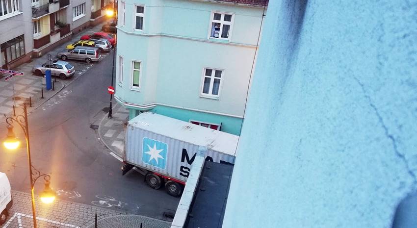 Do zdarzenia doszło dzisiaj ok. 20.45. Policja została zaalarmowana, że ciężarówka jadąca ulicą 3 Maja podczas skrętu w Zamkową zahaczyła o kamienicę. Z naszych informacji wynika, że uszkodzenie nie jest duże, ale interweniujący funkcjonariusze wyjaśniają sprawę i próbują wyprowadzić kierowcę tira na parking przy ul. Wałowej.