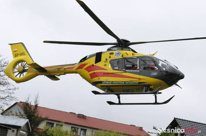 Do zdarzenia doszło w Ligocie Polskej. Lotnicze Pogotowie Ratunkowe przyleciało do mężczyzny, który spadł z drabiny.