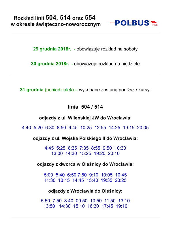 W tym dniu obowiązują specjalne rozkłady jazdy na trasie Oleśnica-Wrocław oraz Wrocław-Oleśnica. Szczegółową listę kursów, które będą wykonywane, możecie znaleźć na grafikach poniżej.