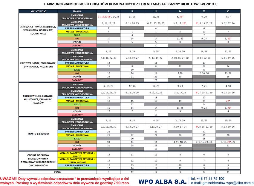 Strona główna » Aktualności » Sprawdź harmonogram odbioru odpadów komunalnych w gminie Bierutów Sprawdź harmonogram odbioru odpadów komunalnych w gminie Bierutów 30.12.2018 14:53 | Red REKLAMA Harmonogram dotyczy okresu od stycznia do końca czerwca 2019 roku. Udostępnij: REKLAMA REKLAMA