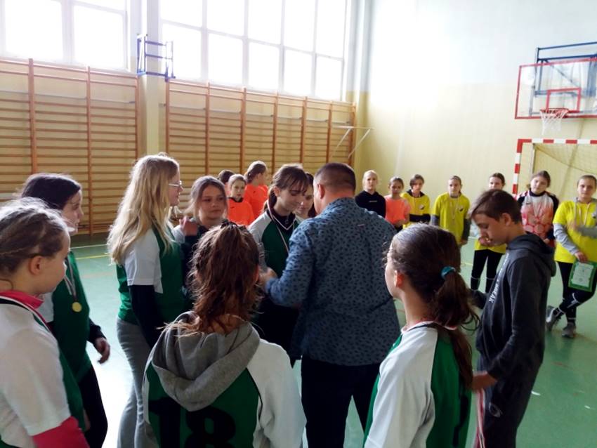 Po mimo deszczowej pogody do rywalizacji zgłosiło się sześć zespołów. – Dziewczęta grały bardzo skutecznie, pokonując oba zespoły 3:0. W finale musiały się zmierzyć z reprezentacją Sokołowic. Regulaminowy czas gry nie wyłonił zwycięzcy. O tym, kto zdobędzie złoty medal zdecydowały rzuty karne. Po zaciętym boju pierwsze miejsce zajęły nasze dziewczęta! Złoty medal i awans na zawody powiatowe był nasz!! Nasza zawodniczka – Aleksandra Zaręba zdobyła tytuł strzelca turnieju – relacjonuje Marta Skorek-Hejninger, nauczycielka wychowania fizycznego.
