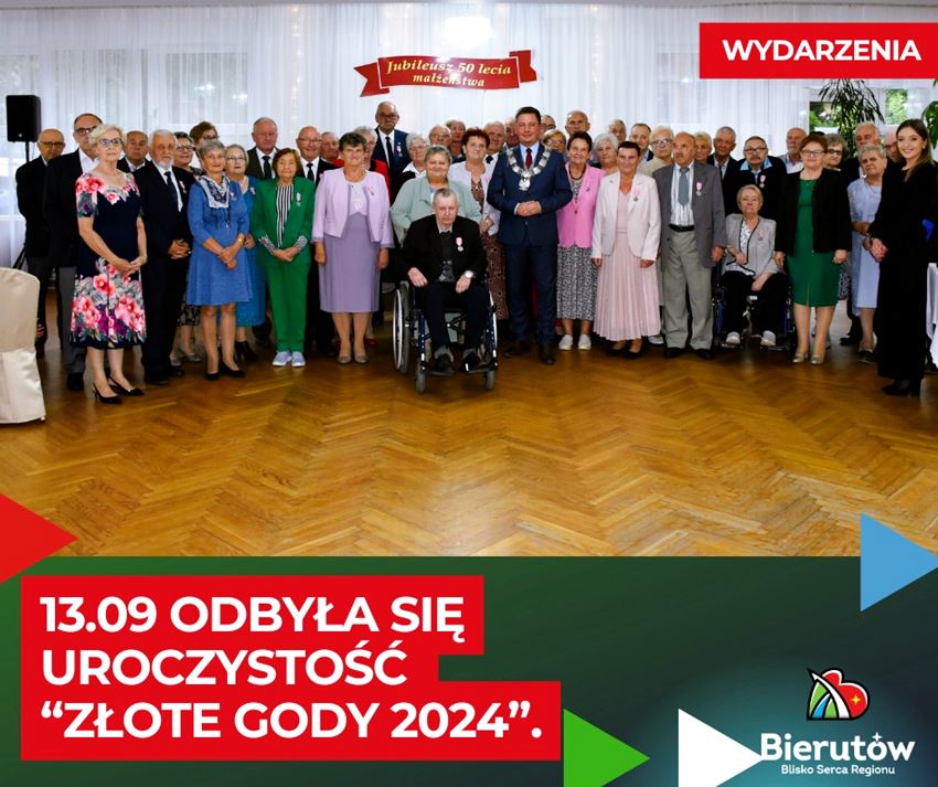 13 września odbyła się uroczystość jubileuszu 50-lecia zawarcia związków małżeńskich mieszkańców naszej gminy „Złote Gody”. Burmistrz Bierutowa wręczył dostojnym jubilatom Medale Prezydenta RP Za Długoletnie Pożycie Małżeńskie. W tym roku Złote Gody świętowało aż 27 par z terenu Miasta i Gminy Bierutów. Uroczyste i pełne wzruszeń popołudnie uświetnił występ zespołu Bierutowianie Bis.