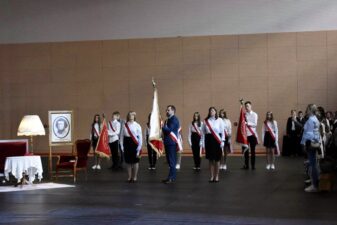 Decyzję o nadaniu szkole imienia Adama Mickiewicza podjęło wspólnie środowisko gminnej podstawówki. Dzisiaj podczas uroczystej mszy św. w kościele Najświętszej Maryi Panny Matki Miłosierdzia odbyło się uroczyste poświęcenie sztandaru. Dokonał tego proboszcz Mariusz Bąkowski.
