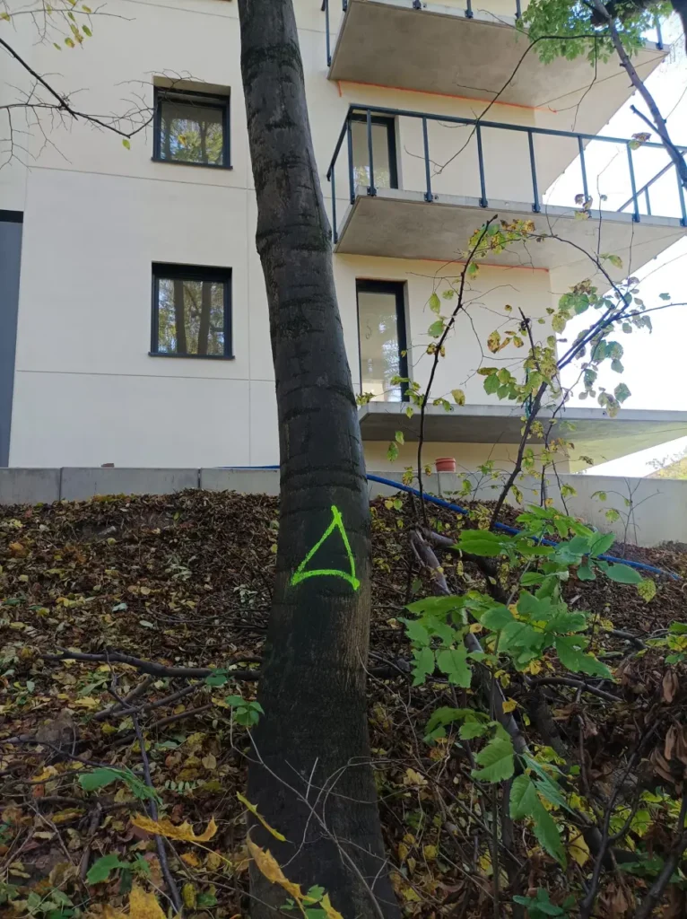 Podczas jednego ze spacerów społecznik zauważył na drzewach znaki – jego zdaniem zapowiedź kolejnych działań przygotowawczych pod wycinkę. – Tak jak pisałem w pierwszym zdaniu… Zdziwicie się, to nie jedyny apartamentowiec w dawnym parku. Za kilka lat aleja parkowa nie będzie przypominać parkowej, tylko osiedlową. To właśnie oleśnicka betonoza – mówi z goryczą.