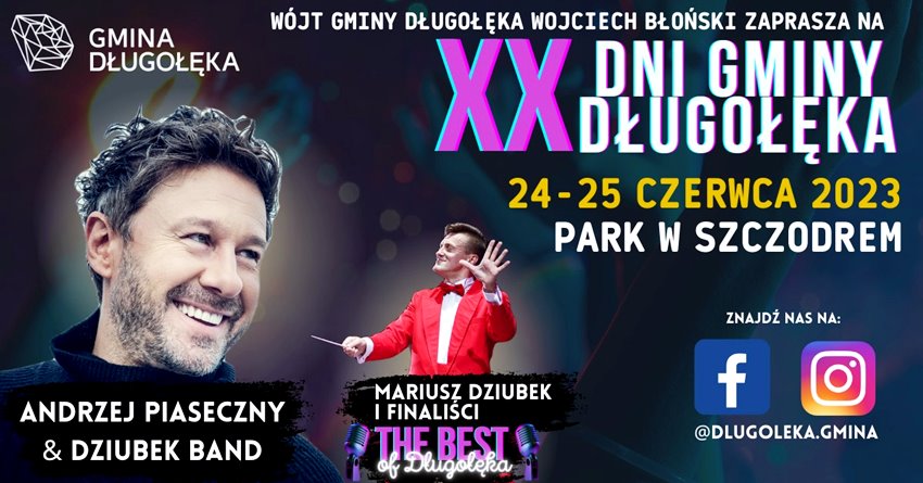 19:00 – Muzyczne Show z Dziubek Band, finalistami The Best of Długołęka i Andrzejem Piasecznym