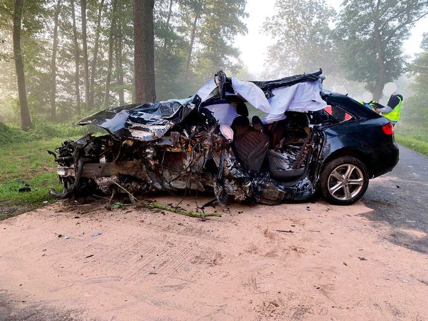 Za kierownicą audi siedział 20-letni Łukasz P. z Jemielnej. Mężczyzna zginął na miejscu.