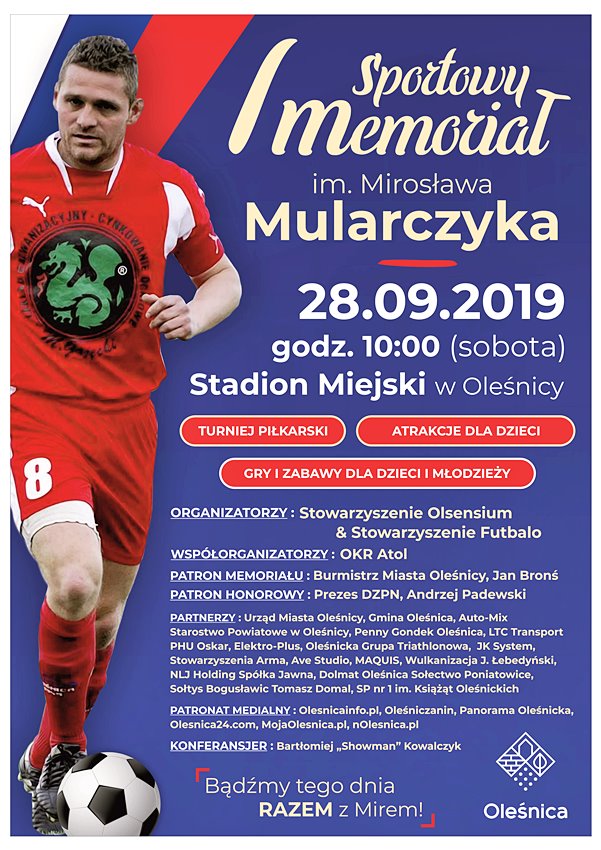 Organizatorami wydarzenia na oleśnickim stadionie są stowarzyszenia Olsensium i Futbalo. W programie m.in. turniej piłkarski, atrakcje dla dzieci, gry i zabawy dla najmłodszych. Współorganizatorem Memoriału poświęconego zmarłemu w styczniu piłkarzowi i nauczycielowi wychowania fizycznego Mirosławowi Mularczykowi jest Oleśnicki Kompleks Rekreacyjny Atol.