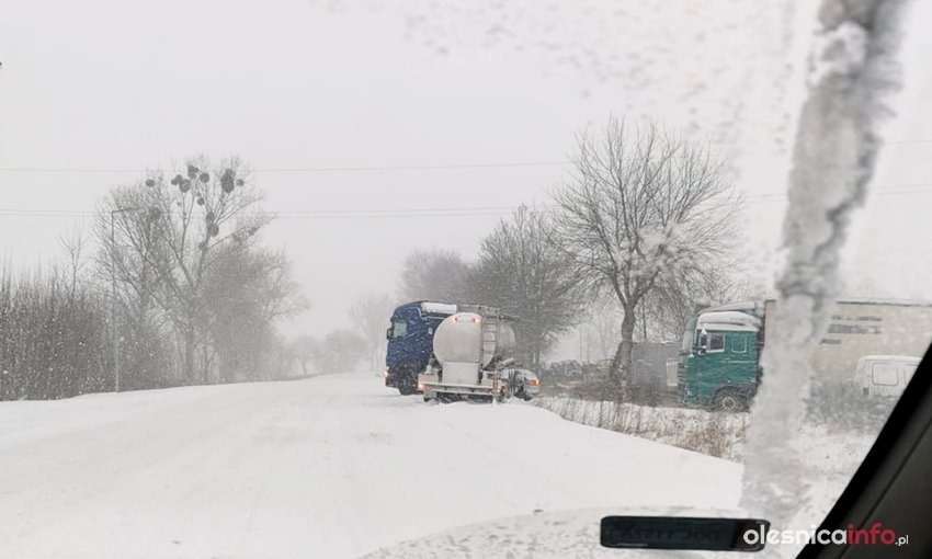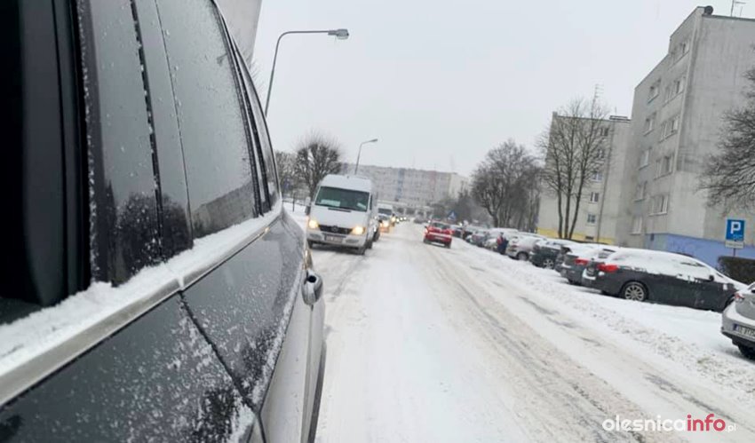 Wiele dróg w powiecie oleśnickim oraz w samej Oleśnicy jest nieprzejezdna. Tworzą się korki, bo kierowcy nie mogś poradzić sobie ze śniegiem, który zalega na jezdniach.