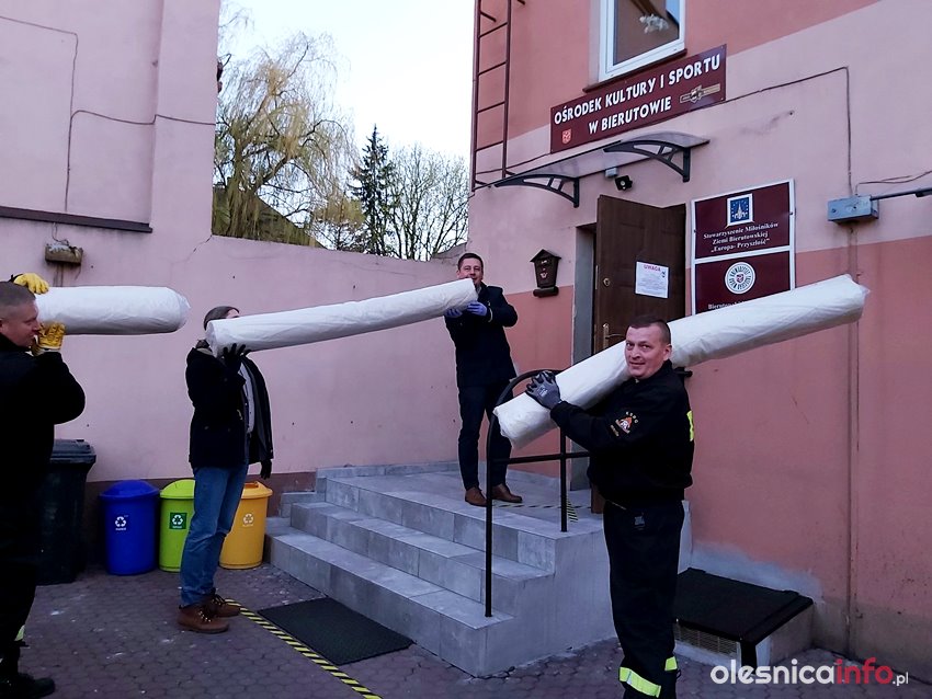 Wszystkim zależało na czasie dlatego wczoraj, dzięki Ochotniczej Straży Pożarnej w Bierutowie odebrano go osobiście w siedzibie firmy w Łodzi, aby wieczorem przekazać materiał na ręce burmistrza Piotra Sawickiego oraz dyrektora Ośrodek Kultury i Sportu w Bierutowie Grzegorza Zmarzłego.