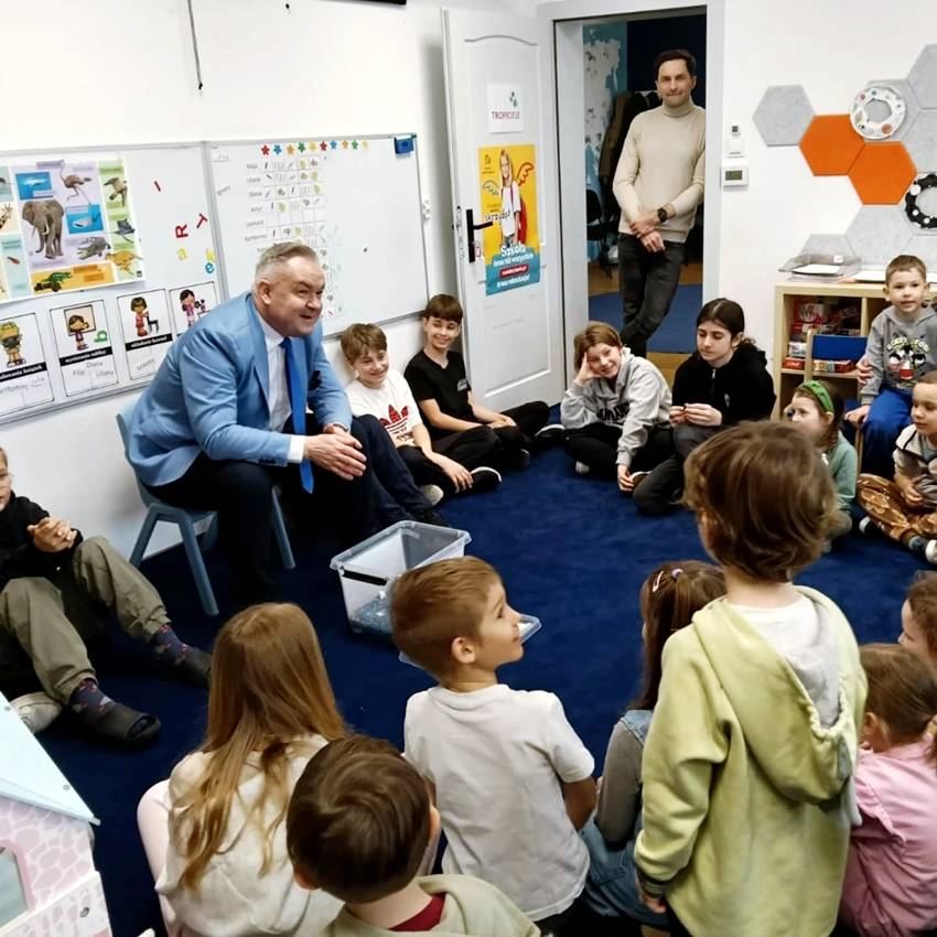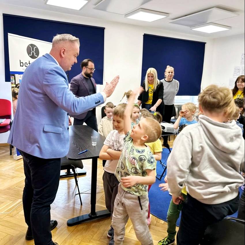 – Pan burmistrz nas odwiedził i spędził z naszymi uczniami czas w sposób niezwykle kreatywny i inspirujący. Pełen dobrego humoru, żartu i przybijanych piątek – relacjonuje szkoła, podkreślając, że było to spotkanie pełne rozmów o edukacji, o przyszłości i rozwoju. – Dzieciaki miały okazję zobaczyć, że ambitna edukacja to coś, co wspierają nie tylko ich nauczyciele i rodzice, ale również władze miasta – relacjonuje Mała Brytania. Pan Burmistrz nie tylko chętnie odpowiadał na dociekliwe pytania Dzieciaków, ale także podzielił się swoimi przemyśleniami i został naszym Ambasadorem Ambitnej Edukacji.