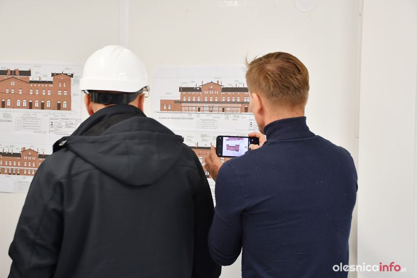 Później uczestnicy komisji obejrzeli wnętrza, w których realizowane są prace. Zobaczyli też próbę elewacji i próbę okienną. – Tak są wykonywane wszystkie elementy historyczne, że najpierw jest próba, potem jej ocena i ostateczna decyzja – wyjaśniała Dorota Luźna.