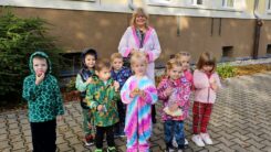 Inicjatorką szkolnego wydarzenia była Joanna Maniak, która, na znak solidarności chorymi onkologicznie dziećmi, zainspirowała całą społeczność SPGO do wzięcia udziału w charytatywnym „Biegu w piżamie”. Dzięki zaangażowaniu uczniów i rodziców udało się wesprzeć fundację „Gdy liczy się czas” kwotą w wysokości 2212,60 zł. Tegoroczna dochód z akcji „Biegu w piżamie” wspomoże budowę magicznego Centrum Rehabilitacji i Fizjoterapii dla onkodzieci – MOGWART- Mogę i jestem tego wart!
