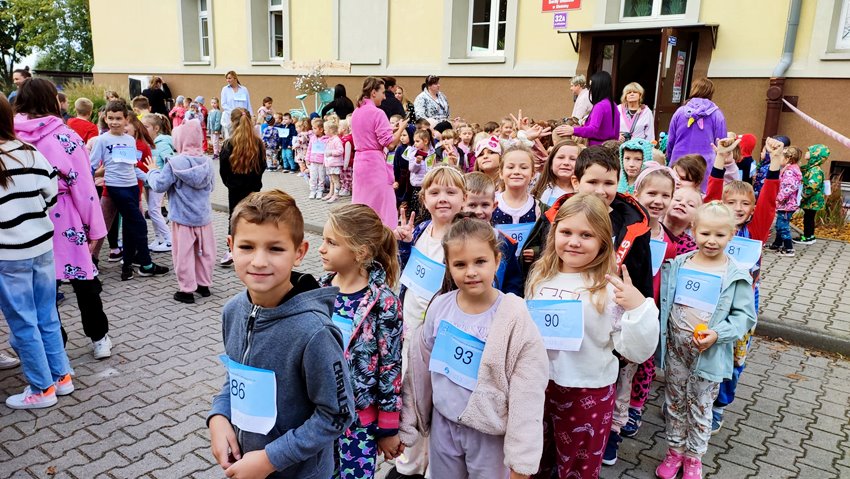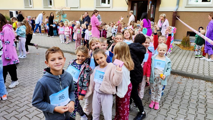 Uczniowie i dzieci z oddziałów przedszkolnych Szkoły Podstawowej Gminy Oleśnica im. Adama Mickiewicza w Oleśnicy udowodnili, że w piżamkach całkiem wygodnie, a do tego pożytecznie się biega.