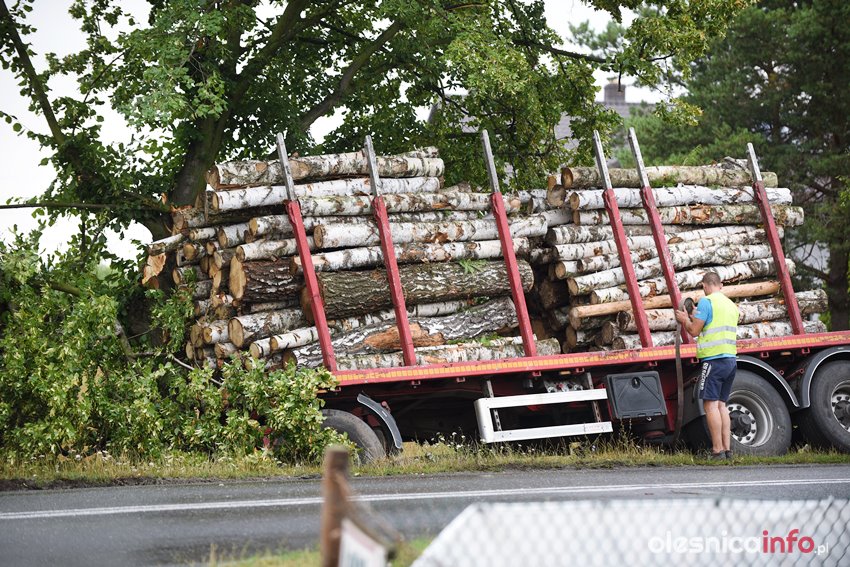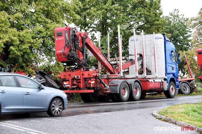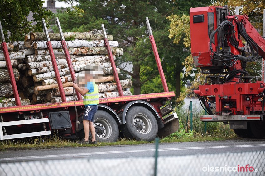 Ciężarówka z drewnem wypadła z drogi. Utrudnienia na Dobroszyckiej