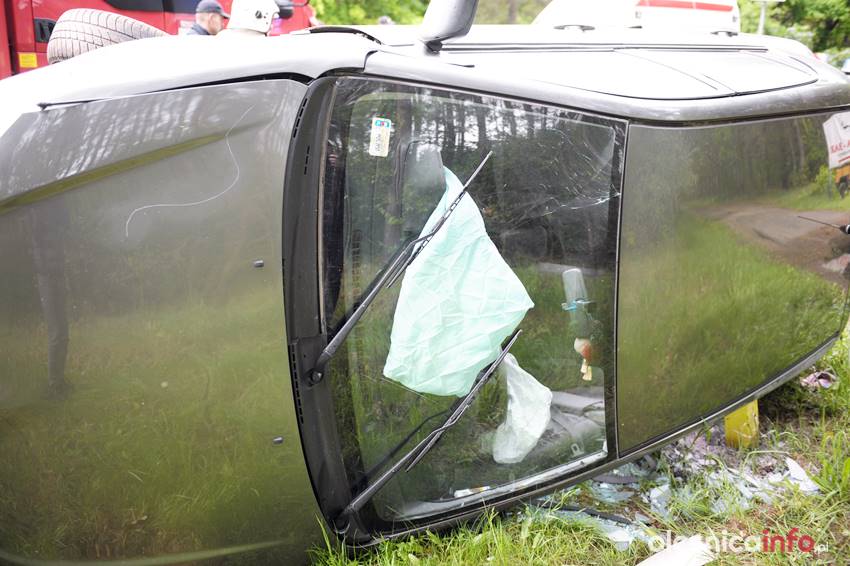 Dachowanie auta pod Ostrowiną. Dwie osoby ranne. Ruch odbywa się wahadłowo
