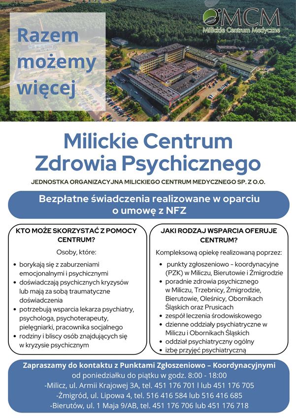 - Poradnia Zdrowia Psychicznego w Oleśnicy ul. Mikołaja Kopernika 12 w budynku Przychodni Mastermed