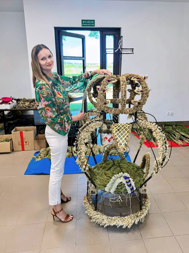 Wspólne plecenie wieńców dożynkowych do tradycja, a także okazja do integracji. Na zdjęciu członkini zarządu Natalia Gołąb