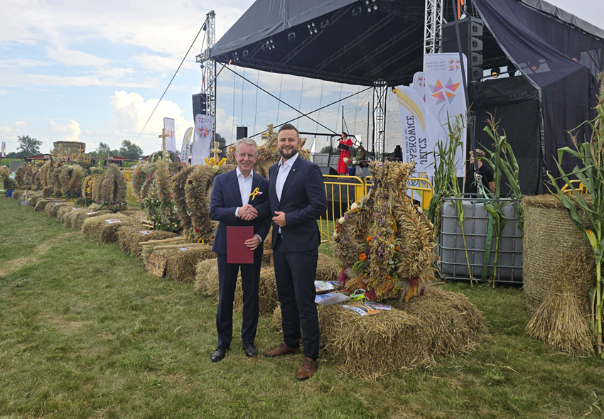 Podczas każdego święta plonów odbywa się konkurs na najpiękniejszy wieniec dożynkowy. Na zdjęciu wicemarszałek Michał Rado