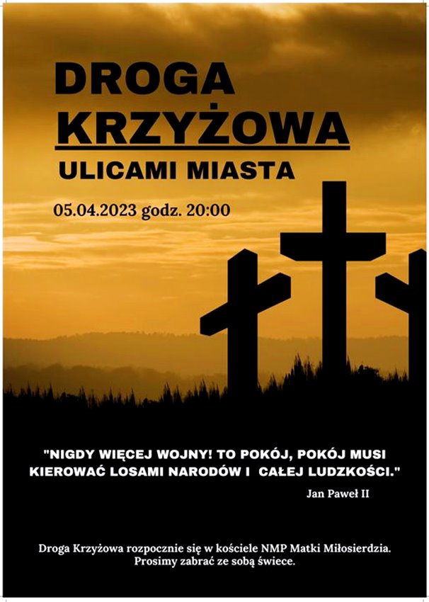 Oleśnickie parafie zapraszają na Drogę Krzyżową ulicami miasta. Odbędzie się ona w Wielką Środę o godz. 20. Wierni wyruszą spod kościoła NMP Matki Miłosierdzia i przejdą w stronę bazyliki mniejszej.