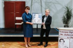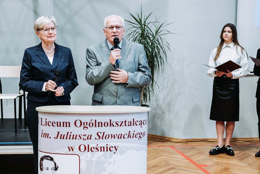 W imieniu nauczycieli-emerytów życzenia dla całej społeczności szkolnej wygłosilidyrektor Zofia Wypchło i dyrektor Jerzy Martin. Z kolei Anetta Adamczuk na ręce dyrektor Marzeny Helińskiej złożyła obraz z podobizną Juliusza Słowackiego.