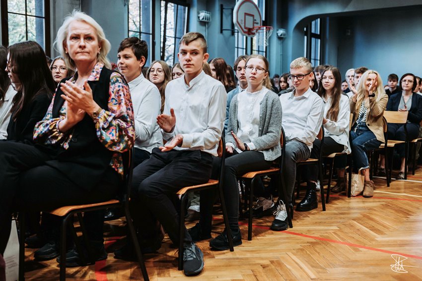 Uroczystość uświetnił program artystyczny przygotowany przez Justynę Krupkę. Brawa należą się: Markowi Doskockiemu (2a), Elizie Kochanowskiej (2b), Leonardowi Balińskiemu (2c), Oliwii Szczepańskiej (2c), Natalii Tomaszewskiej (2c), Aleksandrowi Zawadzkiemu (2c), Marii Chirowskiej (3a), Hubertowi Pietrzak-Rogali (3d), Igorowi Misiaszkowi (4b), Wiktorii Skibie (4b), Sebastianowi Skowrońskiemu (4b), Hubertowi Stróżykowi (4b), Weronice Wolak (4b), Marcelinie Kobieli (4d) i Laurze Stepień (4d). Dziękujemy Weronice Habrych (2c) za wykonanie rekwizytów scenicznych, Tobiaszowi Kaczale (4d) za pomoc techniczną.