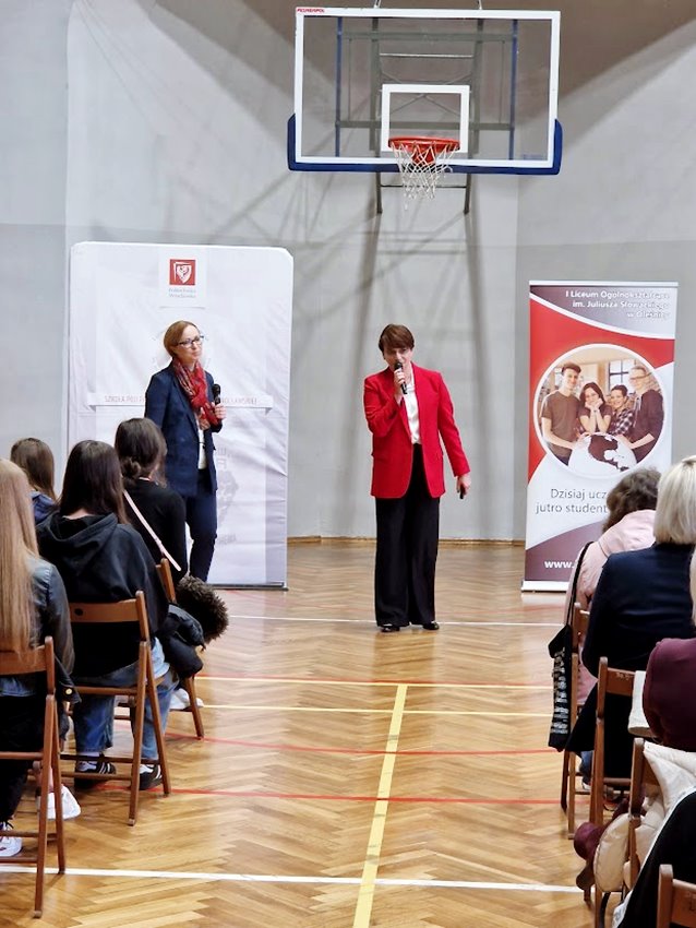 Pierwszym punktem programu Drzwi Otwartych było spotkanie z Marzeną Helińską – dyrektor Liceum i Katarzyną Niesobską-Łacny – wicedyrektor Liceum, które zaprezentowały ofertę edukacyjną szkoły oraz przedstawiły zasady i terminy rekrutacji.