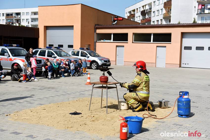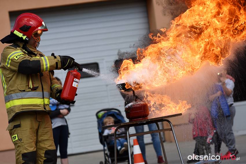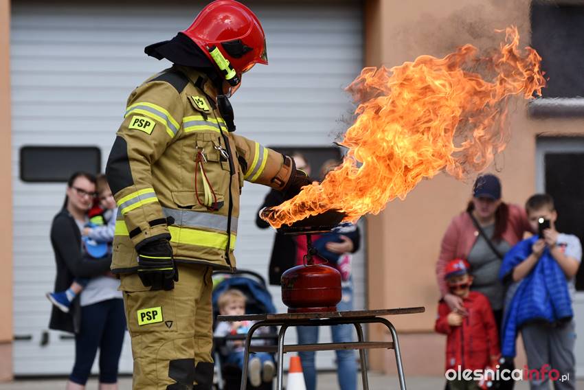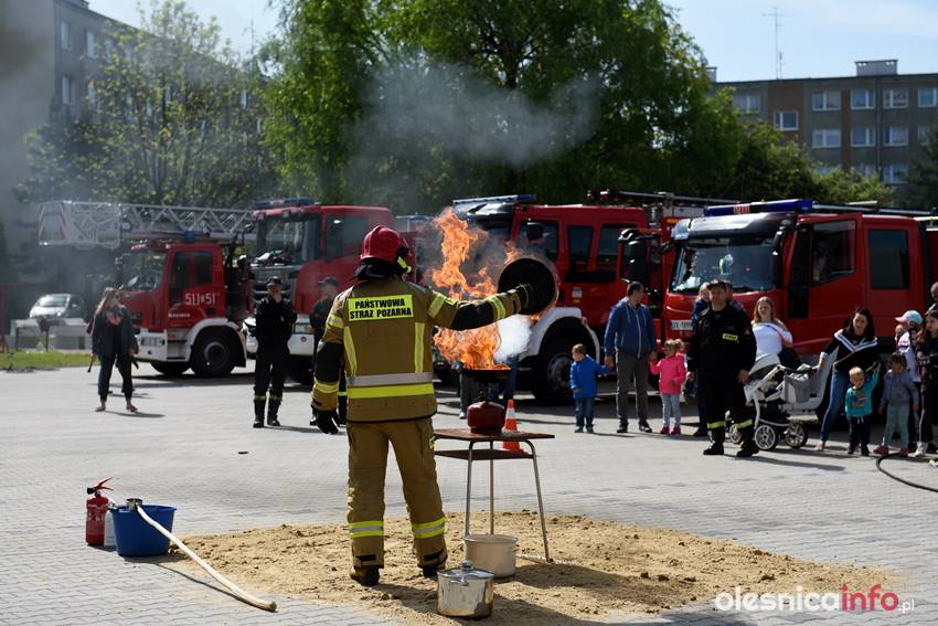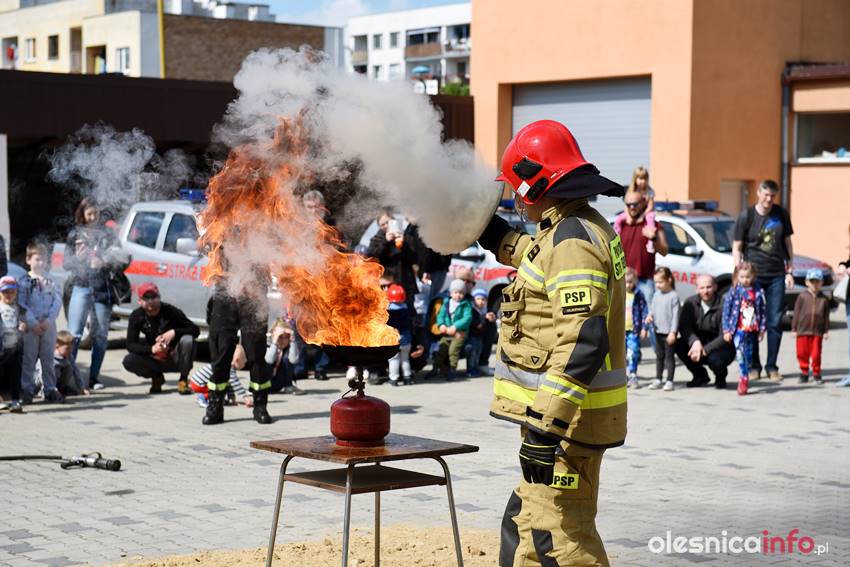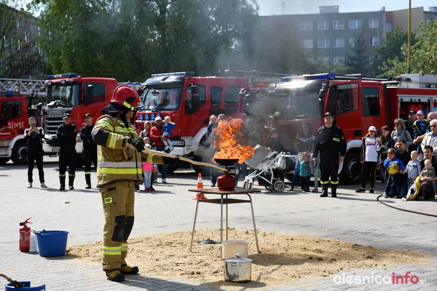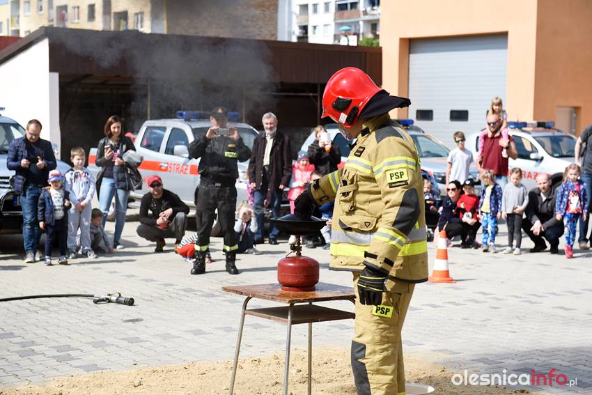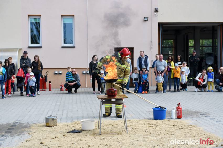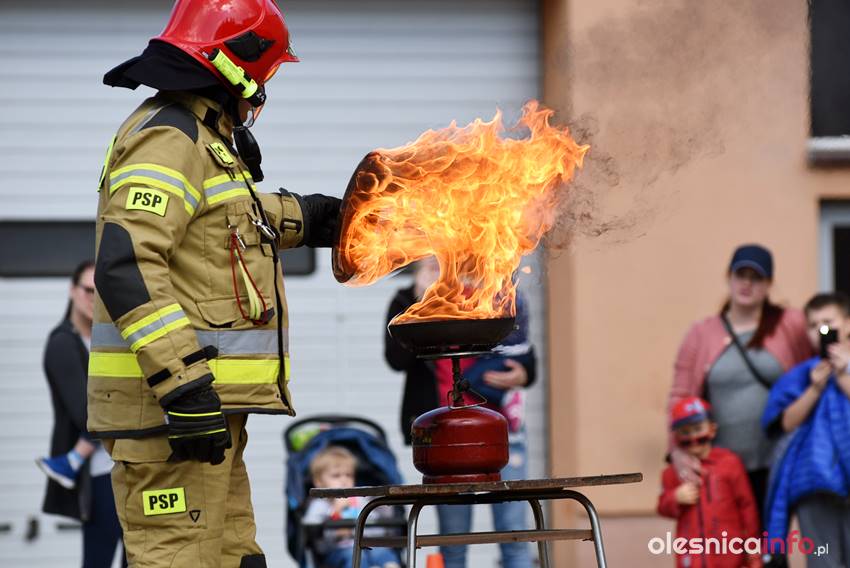 Strażacy prezentują mieszkańcom strażnicę od wewnątrz. Są też pokazy przedstawiające różne sytuacje, z którymi strażacy mają do czynienia w swojej pracy. Wśród nich była m.in. symulacja pożaru i pokaz gaszenia rozgrzanego oleju na kuchence gazowej. Szczegóły akcji omawiał Marcin Purzyński, oficer prasowy oleśnickiej komendy.