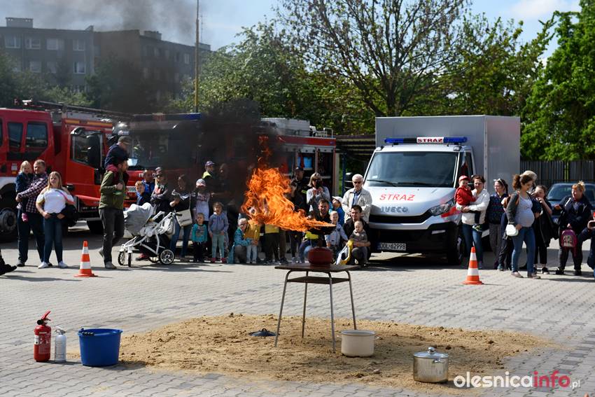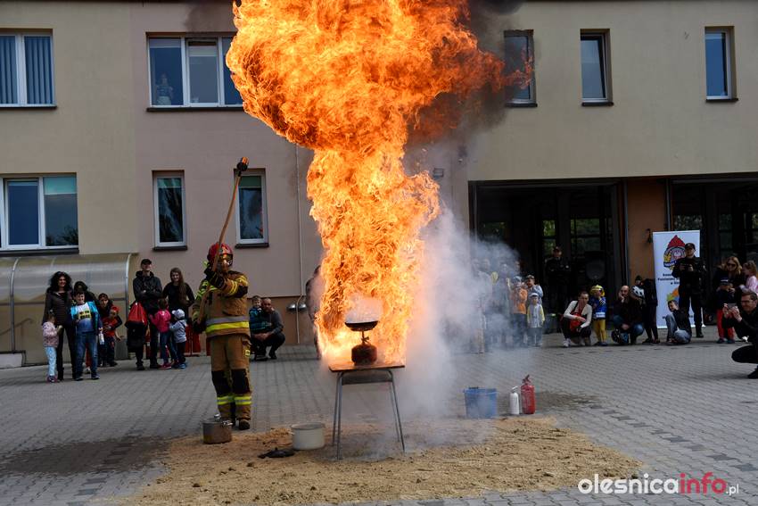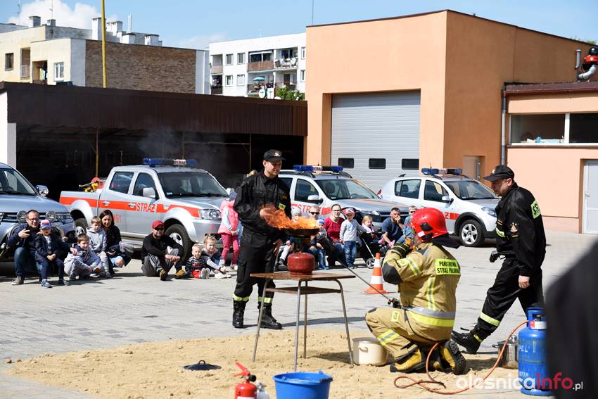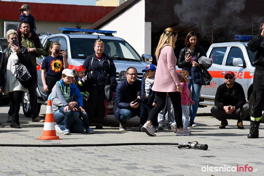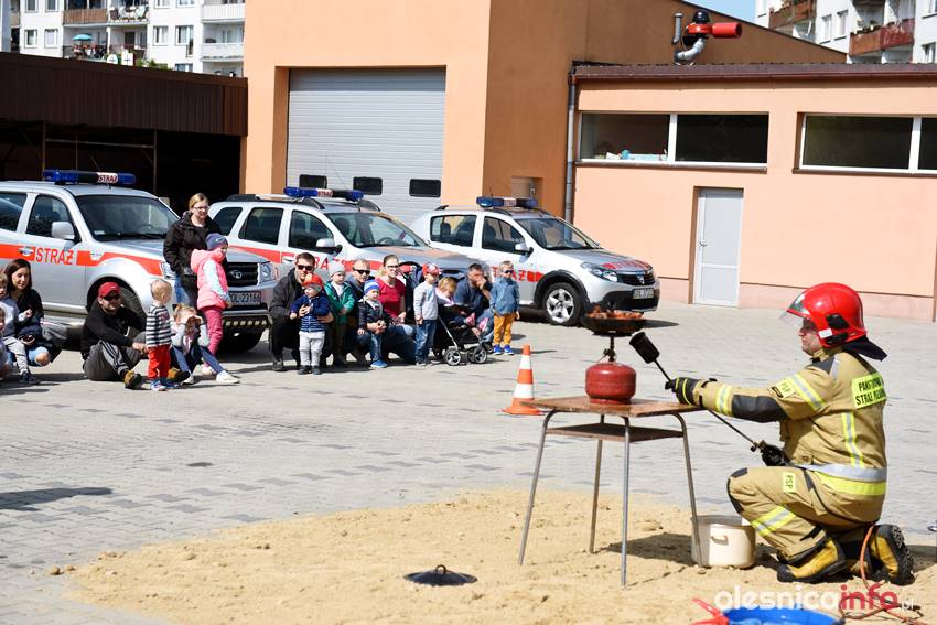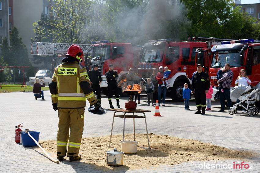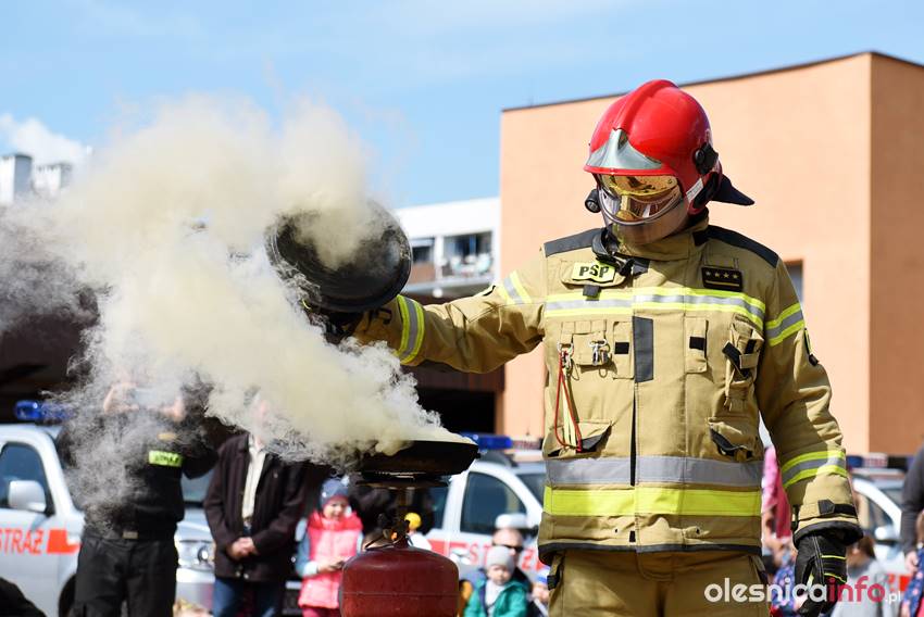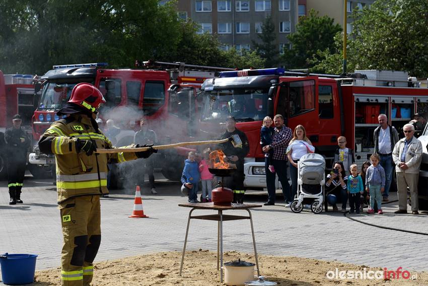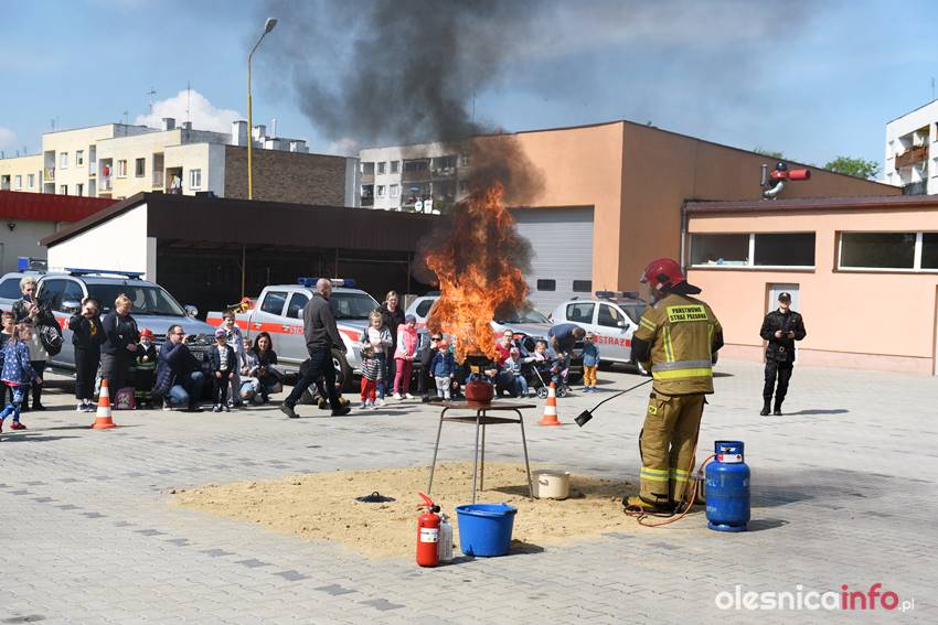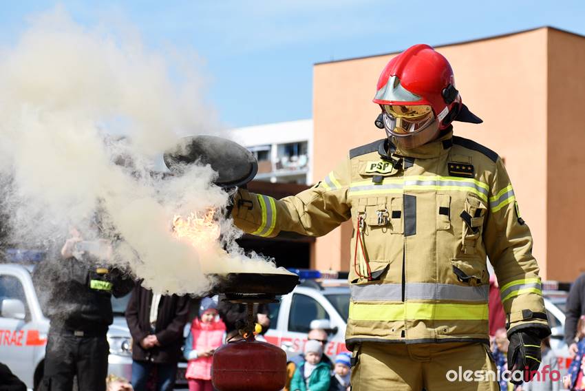 Strażacy prezentują mieszkańcom strażnicę od wewnątrz. Są też pokazy przedstawiające różne sytuacje, z którymi strażacy mają do czynienia w swojej pracy. Wśród nich była m.in. symulacja pożaru i pokaz gaszenia rozgrzanego oleju na kuchence gazowej. Szczegóły akcji omawiał Marcin Purzyński, oficer prasowy oleśnickiej komendy.