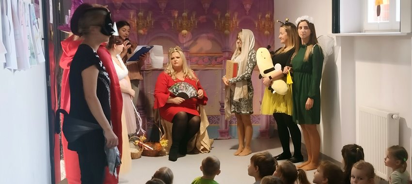 Z okazji Międzynarodowego Dnia Postaci z Bajek „ciocie” z Przedszkola Publicznego „Zielone Ogrody”, Niepublicznego Przedszkola przy KSP oraz Niepublicznego Przedszkola Językowego Aniołów Stróżów, wystąpiły dla przedszkolaków, w autorskim przedstawieniu pt. „Z serca do Bajek”.