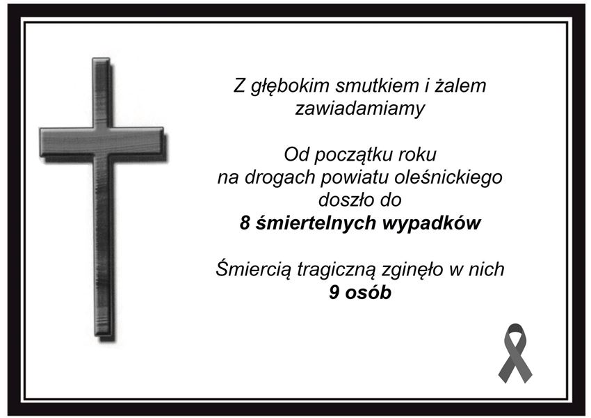 – W ostatnich dniach na terenie powiatu oleśnickiego doszło do kolejnego tragicznego wypadku drogowego – poinformowała Bernadeta Pytel z KPP w Oleśnicy. –  Na skutek odniesionych obrażeń w tym zdarzeniu śmierć poniósł 59-letni mężczyzna.