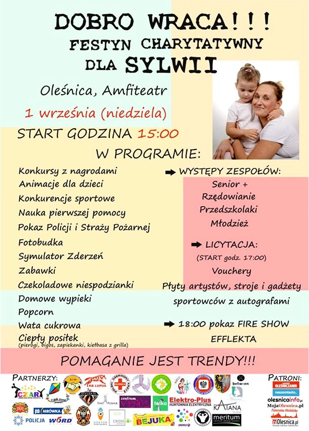 W programie m.in. występy artystyczne, nauka pierwszej pomocy, licytacja. Sylwia ma 39 lat, samotnie wychowuje troje dzieci. Ciągle pomimo pogarszającego się samopoczucia wysyłano ją jako przemęczoną matkę na urlop i do psychologa z podejrzeniem depresji. Ostateczna diagnoza: toczeń rumieniowaty układowy (TRU), zespół Sjogrena i układowe zapalenie naczyń, czyli nieokreślona układowa choroba tkanki łącznej, która niszczy ją i zabija od środka – jak cichy zabójca. Sylwia ze Smardzowa walczy, ale potrzebuje środków na kosztowne leczenie.