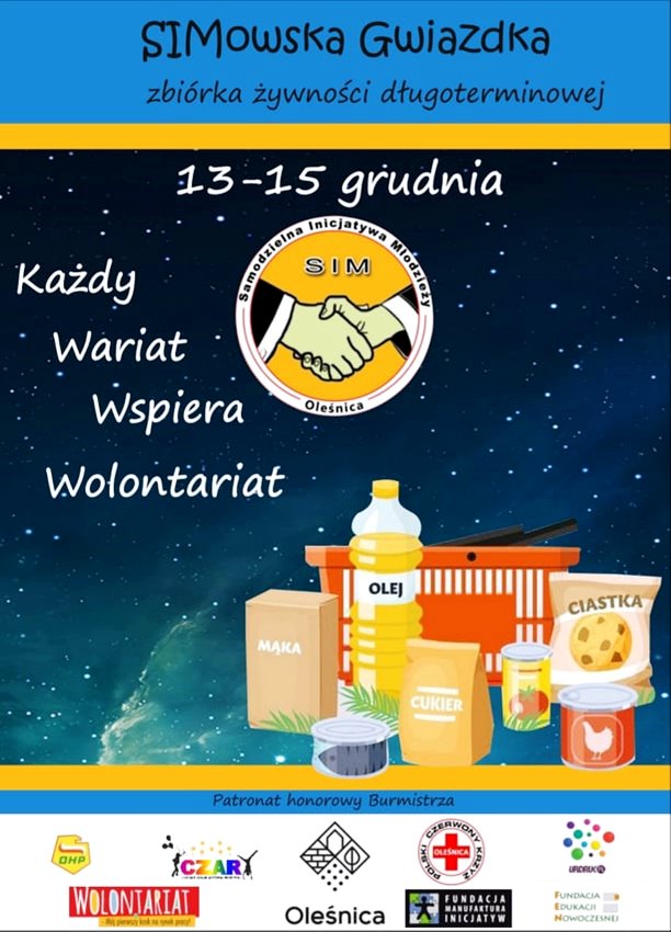 Rusza  zbiórka żywności długoterminowej „SIMowska Gwiazdka 2019” organizowana przez Samodzielną Inicjatywę Młodzieży.