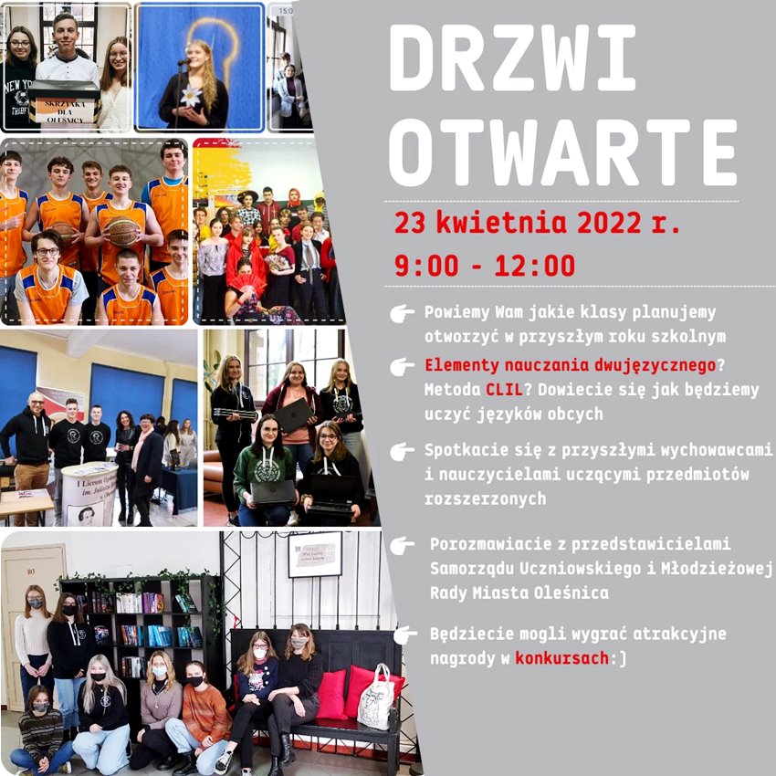I Liceum Ogólnokształcące w Oleśnicy zaprasza do wzięcia udziału w Drzwiach Otwartych.
