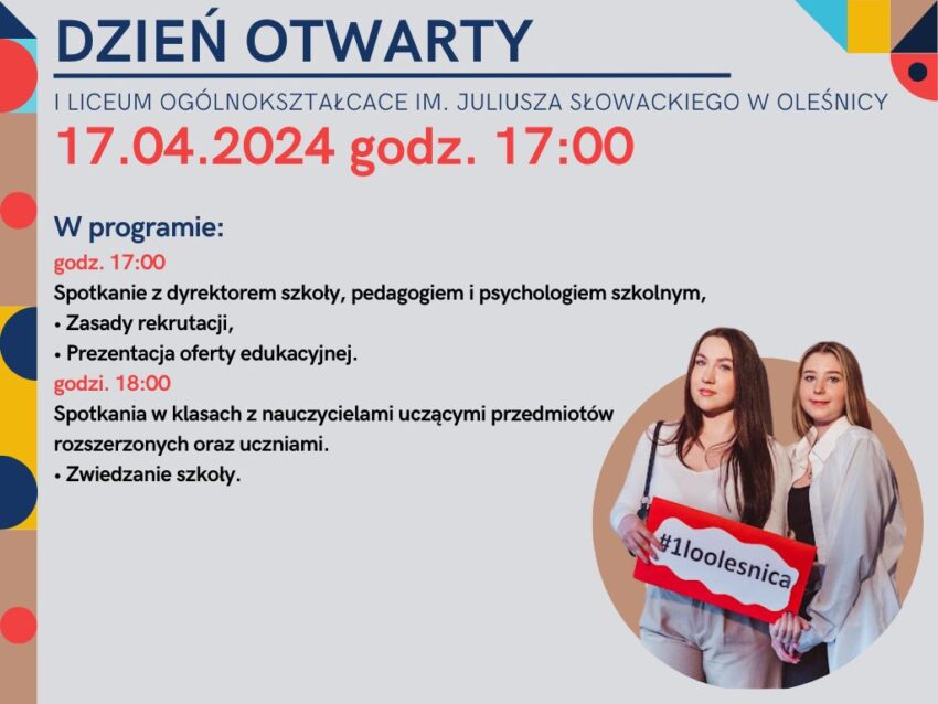 I LO w Oleśnicy zaprasza na Dzień Otwarty