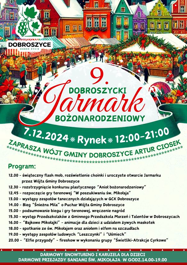 – 7 grudnia o godz. 12, tanecznym krokiem wejdziemy na dobroszycki Rynek w towarzystwie niezwykłego gościa, czyli św. Mikołaja, któremu wójt gminy Dobroszyce Artur Ciosek na cały dzień odda klucze do Dobroszyc – tak Gminne Centrum Kultury w Dobroszycach zaprasza na tegoroczny jarmark świąteczny.