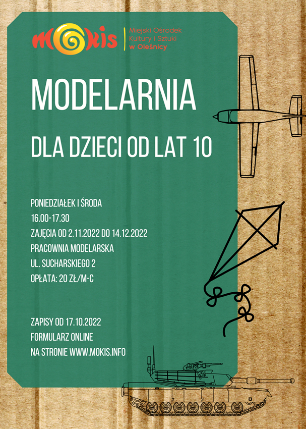 Miejski Ośrodek Kultury i Sztuki w Oleśnicy zaprasza dzieci od 10. roku życia na zajęcia modelarskie.