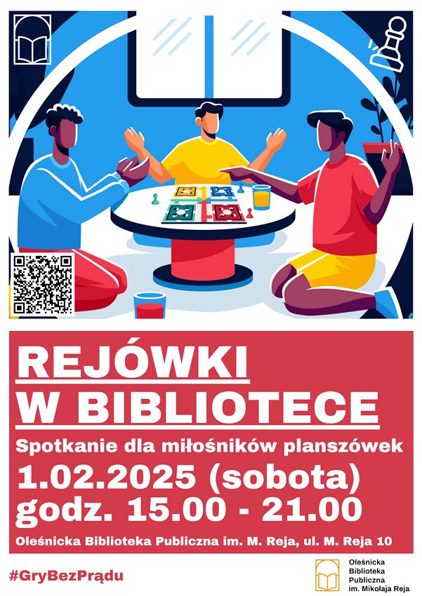 Podczas wydarzenia będzie można zapoznać się z grami dostępnymi do wypożyczania na co dzień w Bibliotece „Pod Sową”. Organizatorzy zachęcają także do przynoszenia na „Rejówki” swoich ulubionych tytułów do rozegrania z innymi uczestnikami spotkania.