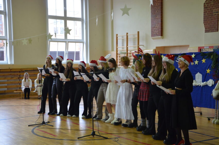 W piątek szkolna hala sportowa rozbrzmiewała także dźwiękami świątecznych melodii – kolęd i znanych piosenek. Dziękujemy wszystkim klasom, które zdecydowały się uświetnić nasz koncert swymi występami: klasie 1c, 1f, 2c i 3d.