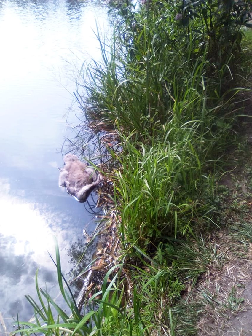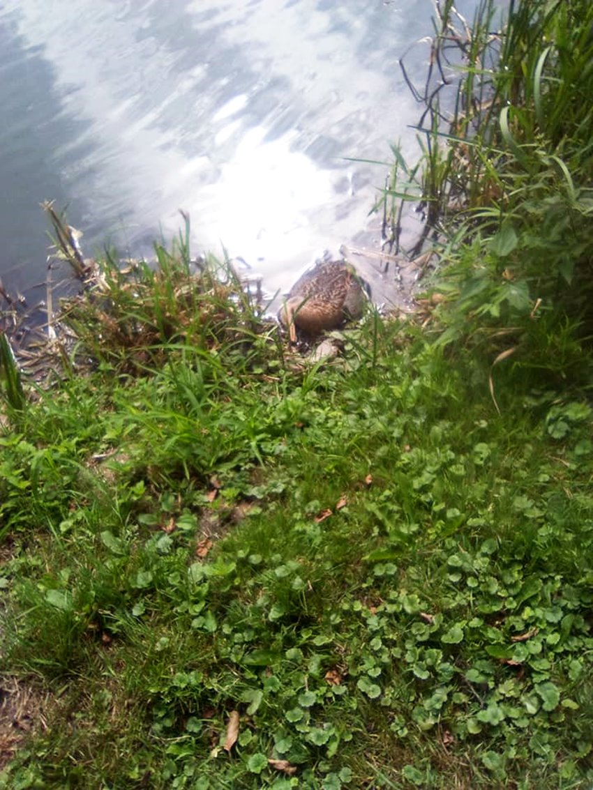 I prezentuje zdjęcia ze stawu przy ul. Kruczej.  – Sierotka umarła. Kilka metrów wcześniej leży martwa kaczka, kilka metrów dalej zdechła ryba. Czy to normalne, taka śmiertelność? – pyta oleśniczanka Sylwia Urbanek i proponuje zbadanie wody w miejskim stawie. – Czuć martwe ryby w kilku miejscach – podkreśla.