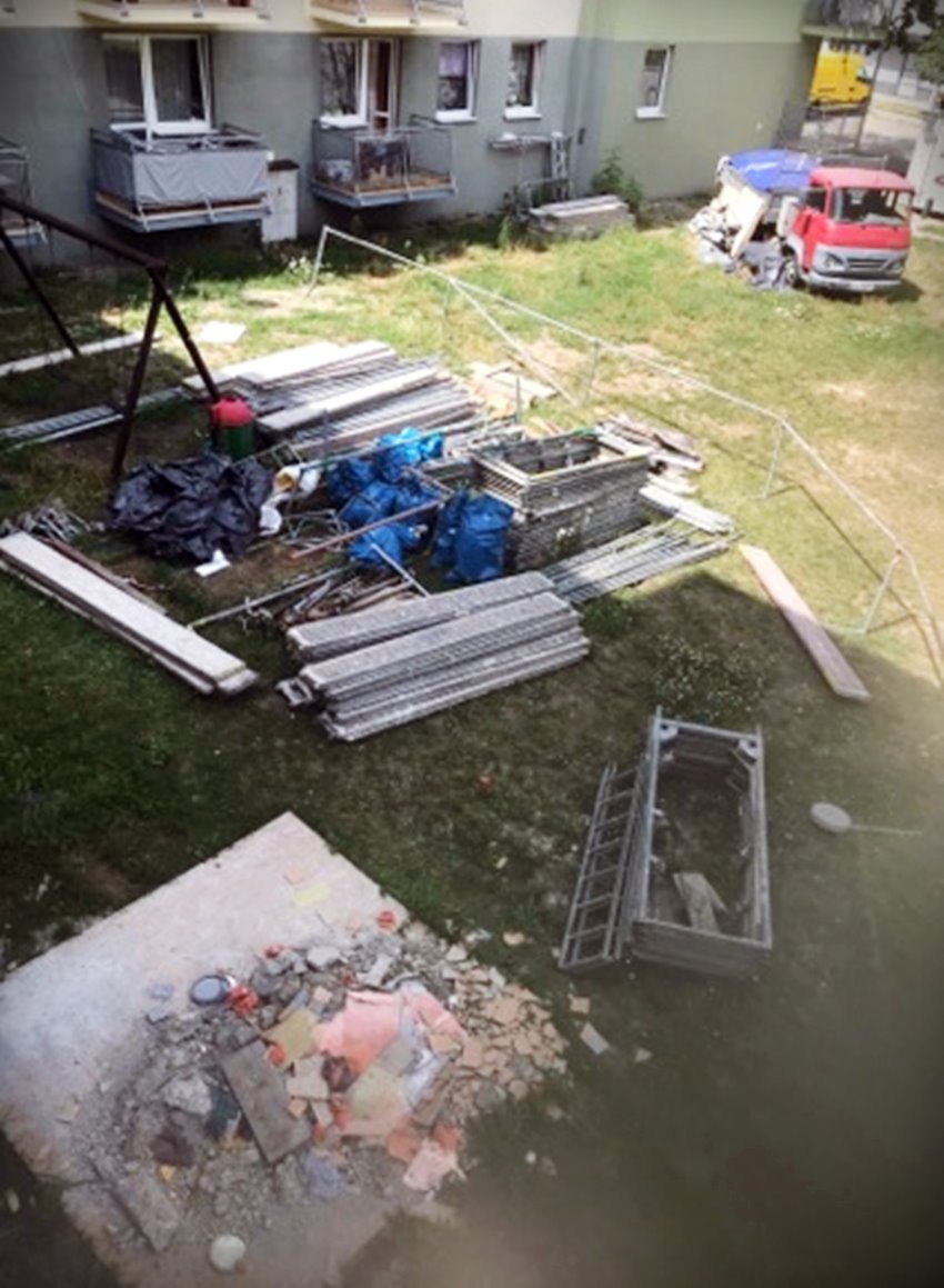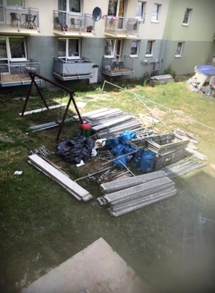 Czytelniczka, która przesłała nam zdjęcia, wyjaśnia, że od marca na osiedlu trwał remont balkonów. – Zakończył się dwa tygodnie temu – mówi, podkreślając, że ekipa remontowa nie kwapi się, by solidnie posprzątać podwórko. – Raz jakiś samochód podjedzie, coś tam zabierze, reszta leży – mówi oburzona oleśniczanka, która ma nadzieję, że nagłośnienie sprawy zmobilizuje ekipę do zabrania wszystkich przedmiotów z podwórka.