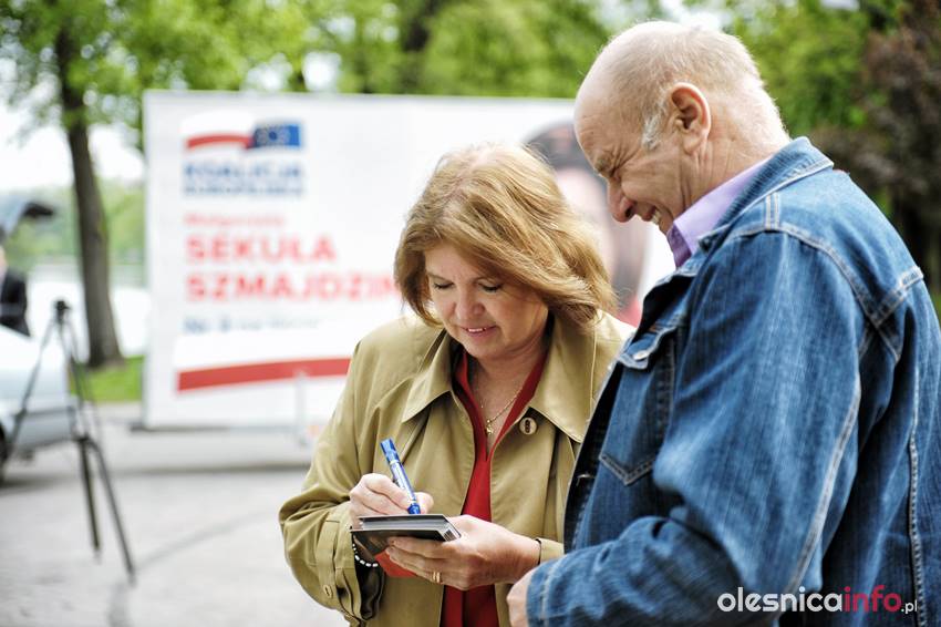 Kandydatkę lewicy na listach Koalicji przedstawił Arkadiusz Sikora, sekretarz regionu SLD. Kandydatce towarzyszyli też działacze oleśnickiej lewicy. Sama Szmajdzińska przekonywała, że wybór miejsca na spotkanie nie jest przypadkowy. – Oleśnickie stawy to wyjątkowe miejsce m.in. dzięki unijnym środkom – mówiła. – Musimy o tym pamiętać, czyniąc starania o lepszą przyszłość naszego kraju i Europy. Kandydatka podkreślała również to, jak ważne jest pójście do majowych wyborów. – W jednym z miast na Opolszczyźnie frekwencja podczas w poprzednich wyborach europejskich wyniosła jedynie 11 procent – ubolewała. – Nie możemy dopuszczać do takich sytuacji. Unia Europejska jest bardzo ważna w naszym życiu, o czym można się przekonać, podziwiając takie miejsca jak wasze stawy. Bruksela wcale nie jest od nas tak daleko, jakby się nam wydawało. Udział w wyborach to nasz obowiązek. To obowiązek wobec przyszłych pokoleń – powiedziała.