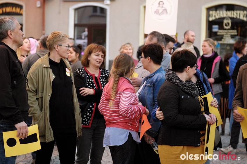 Mieszkańcy Oleśnicy pojawili się dzisiaj na oleśnickim Rynku, by zamanifestować swoją solidarność ze strajkującymi od dwóch tygodni nauczycielami.