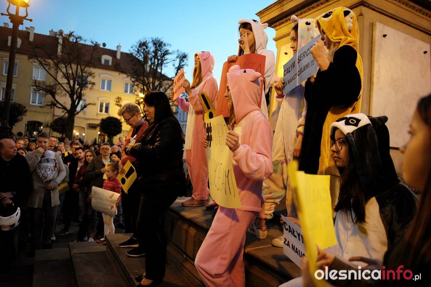 Na manifestacji pojawili się zarówno rodzice, jak i uczniowie oraz nauczyciele z oleśnickich szkół. W tłumie wypatrzyliśmy również burmistrza Jana Bronsia oraz jego zastępczynię Edytę Mays-Niczypor.