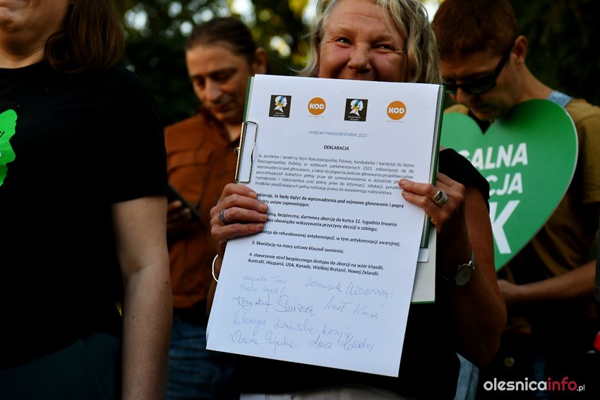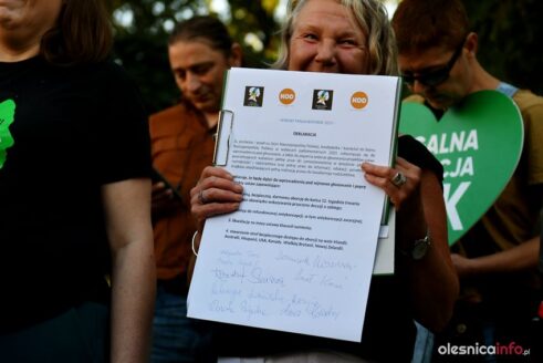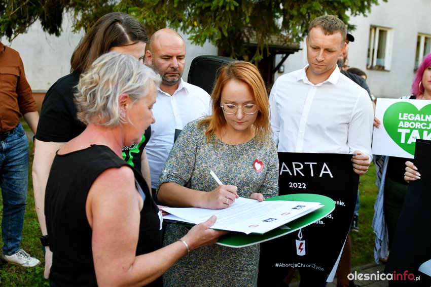 Treść petycji, która ma być przekazana władzom Oleśnicy, odczytała Rienka Kasperowicz. Petycja dotyczy podjęcia kroków prawnych mających ukrócić dalsze manifestacje fundacji Pro Prawo do Życia, które od wielu miesięcy odbywają się w Oleśnicy.