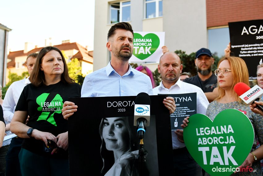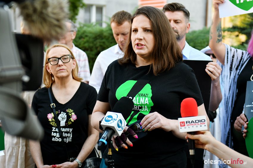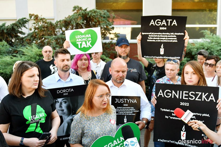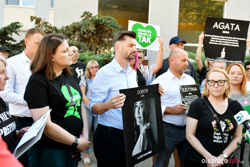 Oleśnicki Strajk Kobiet i Strajk Kobiet z Wrocławia byli organizatorami dzisiejszego protestu w Oleśnicy. Jego pierwsza część odbyła się przed budynkiem szpitala. Wzięli w niej udział także szef powiatowej Lewicy Michał Karaś, posłowie Małgorzata Tracz i Krzysztof Śmiszek. Oboje podkreślali stanowczo, że stoją po stronie kobiet, ale także empatycznego zespołu oleśnickiej ginekologii, który jako jeden z nielicznych w kraju wykonuje legalne aborcje.