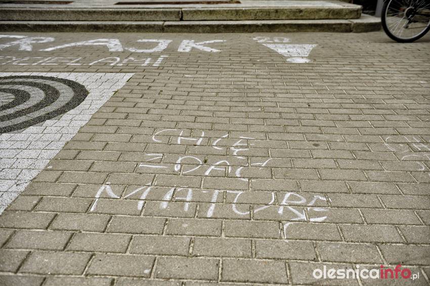 W ten sposób uczniowie ostatnich klas liceum przypomnieli o mających się odbyć w maju maturach. Plakat pojawił się na drzwiach szkoły. Wetknięto za niego także rysunek krowy oraz ksero banknotu 500-złotowego. Przed budynkiem liceum są też napisy #Stop Strajk czy Chcę zdać maturę. Widnieje też napis sprzed kilku dni informujący o tym, że uczniowie stoją murem za nauczycielami.